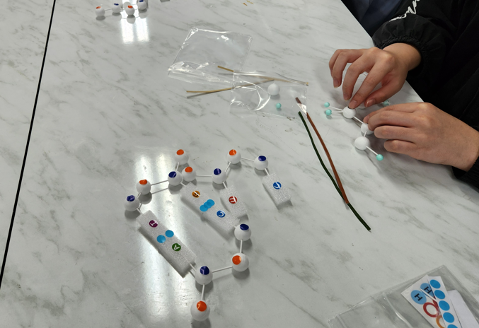 특히, 아미노산 구조를 유일하게 직접 만들어 볼 수 있는 헬로앱스의 생명과학 키트를 활용하여 학생들은 3차원 아미노산 구조를 직접 만들고, 친구들과 2인 1조로 서로 펩타이드 결합까지 직접 만들게 됩니다.
